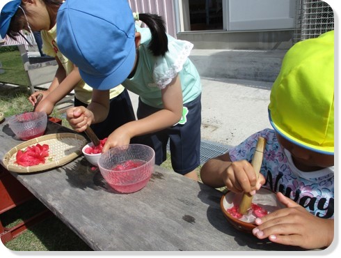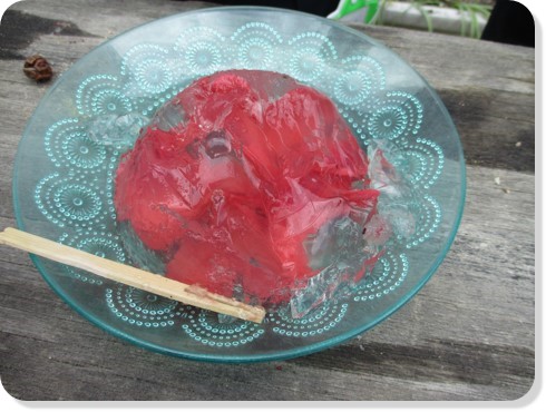 その色水にゼラチンを入れて冷蔵庫へ・・・。