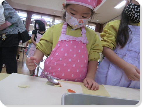 地域のジャム工場と連携し、出前ジャムづくり体験をしていただきました。完成したジャムを使って「いちごジャムパイ」を作り、ハロウィンパーティで食べました。