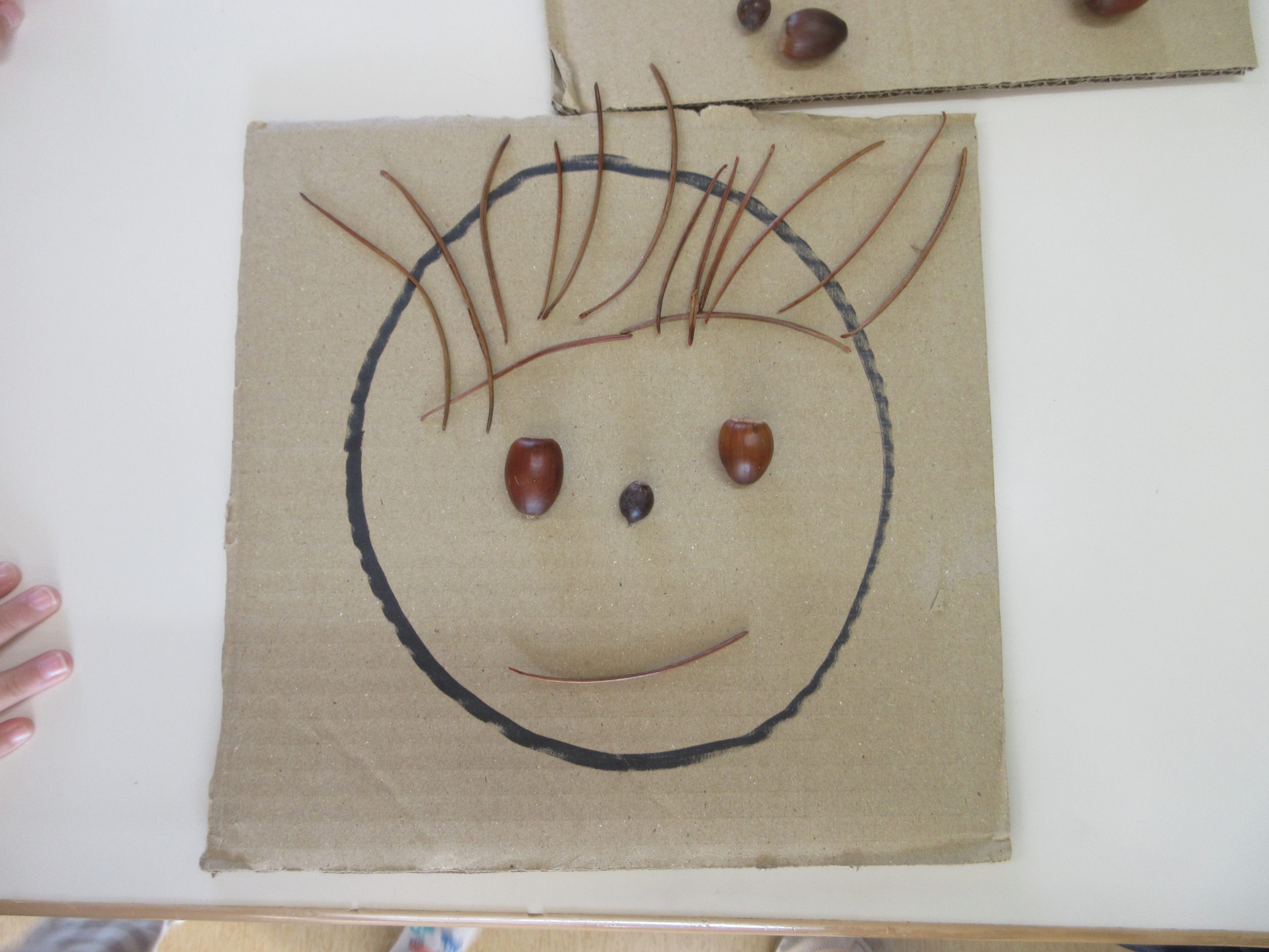 「これは目、これは髪の毛」「笑ってる顔やで」「怒ってる顔やで」など、自然物を使って色々な表情を表現していました。
