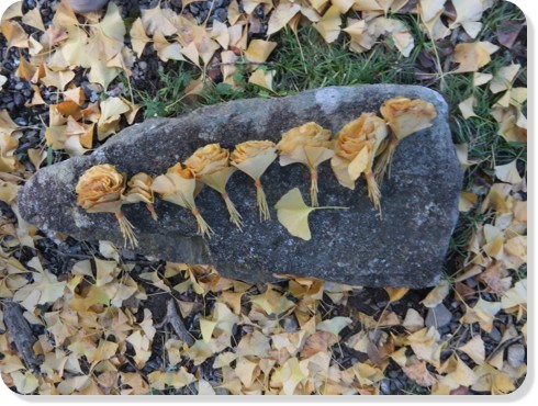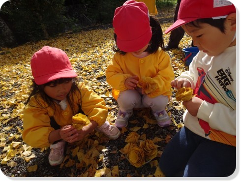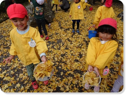 ・11月中旬~下旬頃、園近くの神社のイチョウの葉がたくさん落ちていたので、拾って集めました。