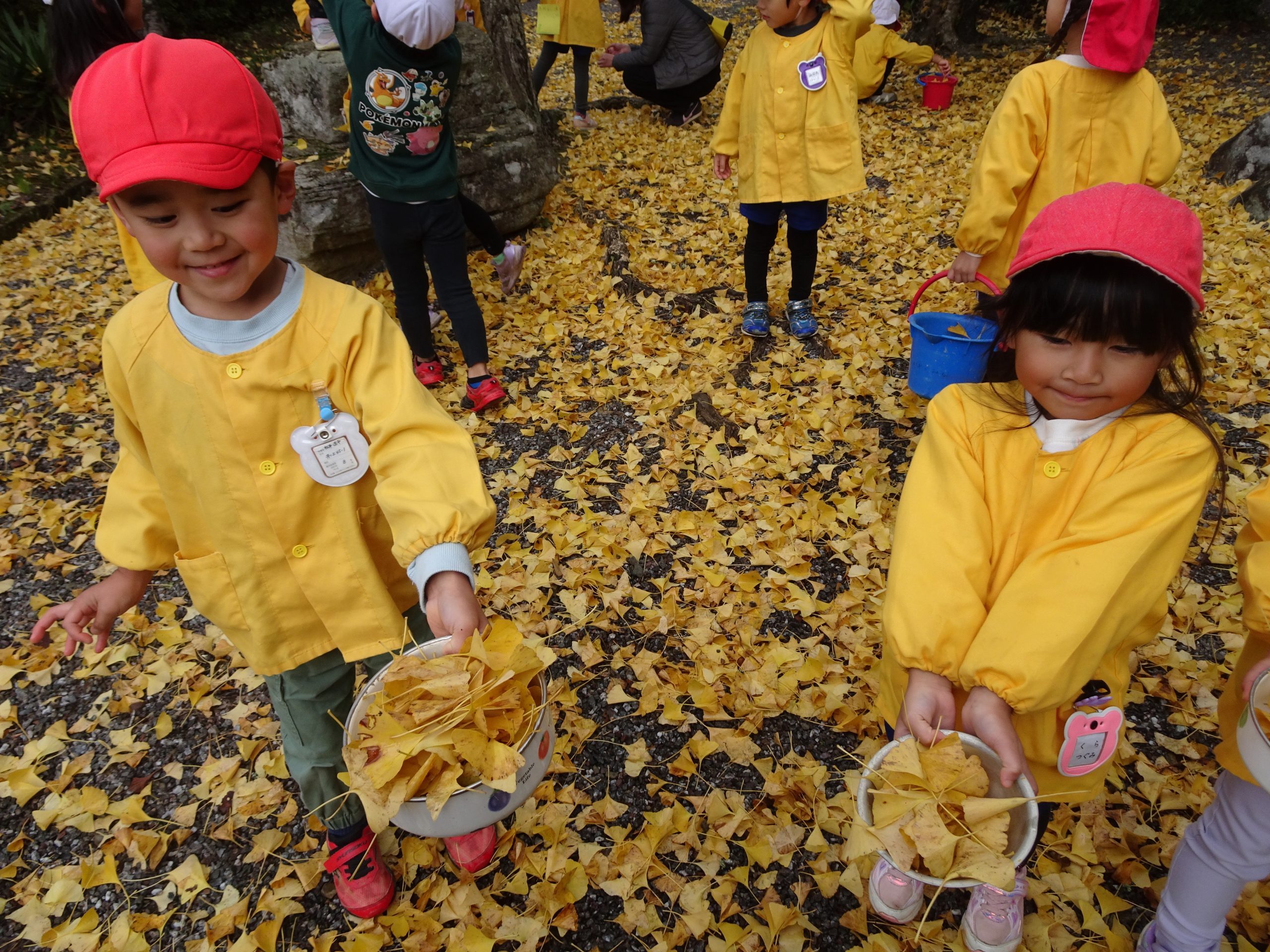 ・11月中旬~下旬頃、園近くの神社のイチョウの葉がたくさん落ちていたので、拾って集めました。