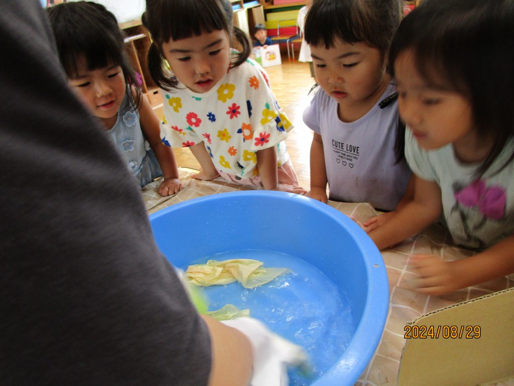 ・③ミョウバン液 (2 ℓ の水にミョウバンを5g) に②を入れ ます 。