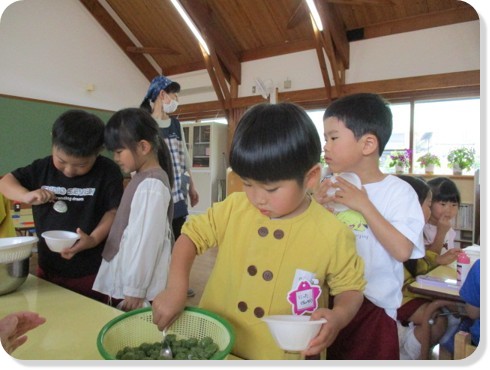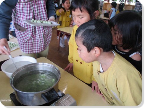 「いいにおい。」「おいしい。」「食べたことなかったけど、おいしかった。」とお代わりをたくさんしました。
