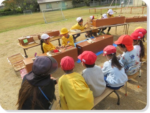 ・友だちと相談し合い、オリジナルのお話を考えます。毎日お話が変わるので、夢中になって遊ぶことができます。